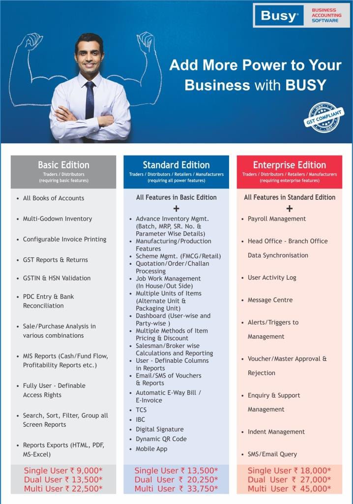This is our price details for BUSY Accounting & Inventory &